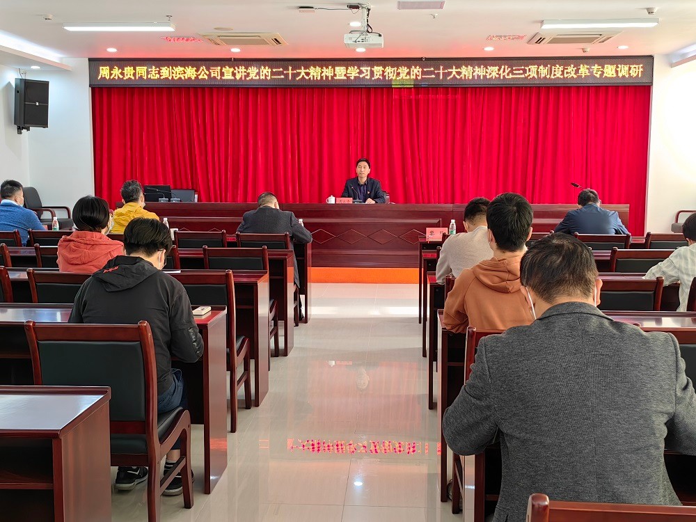 12月8日上午,市城投集團黨委書記、董事長周永貴到掛點聯(lián)系的下屬濱海公司宣講黨的二十大精神,并就學習貫徹黨的二十大精神深化三項制度改革開展專題調(diào)研。濱海公司全體黨員干部職工參加宣講會及專題調(diào)研。
